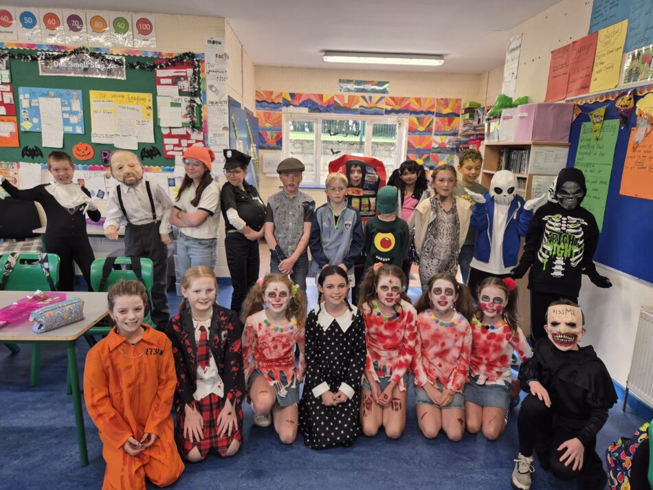 In the morning, we gathered for a special whole school assembly where everyone could see the amazing costumes across the school. The atmosphere was buzzing with laughter and cheer, making it a celebration of imagination and fun! We wished Ms Caitríona O’Sullivan the best of luck for her wedding that will be held over the midterm break. Children from Juniors and Senior Infants performed a poem for Ms O’ Sullivan, wishing her all the best.
