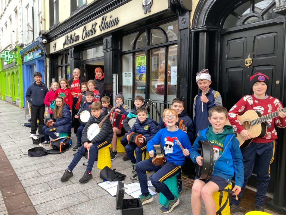 We were so lucky and proud to be taking part in the Cork International Choral Festival by hosting a Friendship Concert. Voices International is a brilliant choir from Luxembourg – that’s a small country in Europe near France, Germany, and Belgium. The choir has singers from all around the world – 45 different countries! Isn’t that amazing? They sing in lots of different languages too – like Zulu, Hindi, Haitian Creole, Slovenian, and even a language called Pakpanese! Their music brings people together and helps us all feel connected. Dr. James Libbey, their conductor, has worked with choirs in many countries, and he helps make their concerts exciting and full of joy. We enjoyed the music and had fun joining in – some pupils even got a chance to be the conductor today! Our school band lead by Mr Murphy performed for the choir in return. Well done to the school band and to Mr Murphy for all his hard work in preparing the children.