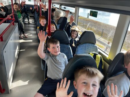 Ms Foley’s class and Ms McCarthy’s class had a fantastic trip to Midleton on Tuesday, 29th April. First, we went to the library. We read books. Some of us checked out books using our library cards. Next, we had a picnic in the baby walk. After our picnic we walked to ‘Stir It Coffee’ in Market Green Shopping Centre. We bought treats. Finally, we went to the playground. We ate ice lollies in the sun. We had a super day! Thanks so much to Garda Donagh for driving us to Midleton on the community bus.